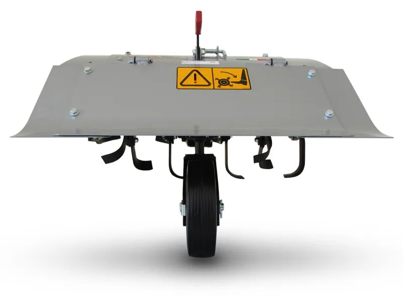 Una volta montato, i coltelli della fresa rimangono sollevati da terra in modo da rendere più agevole e meno faticoso il trasporto del motocoltivatore verso il campo di lavoro.